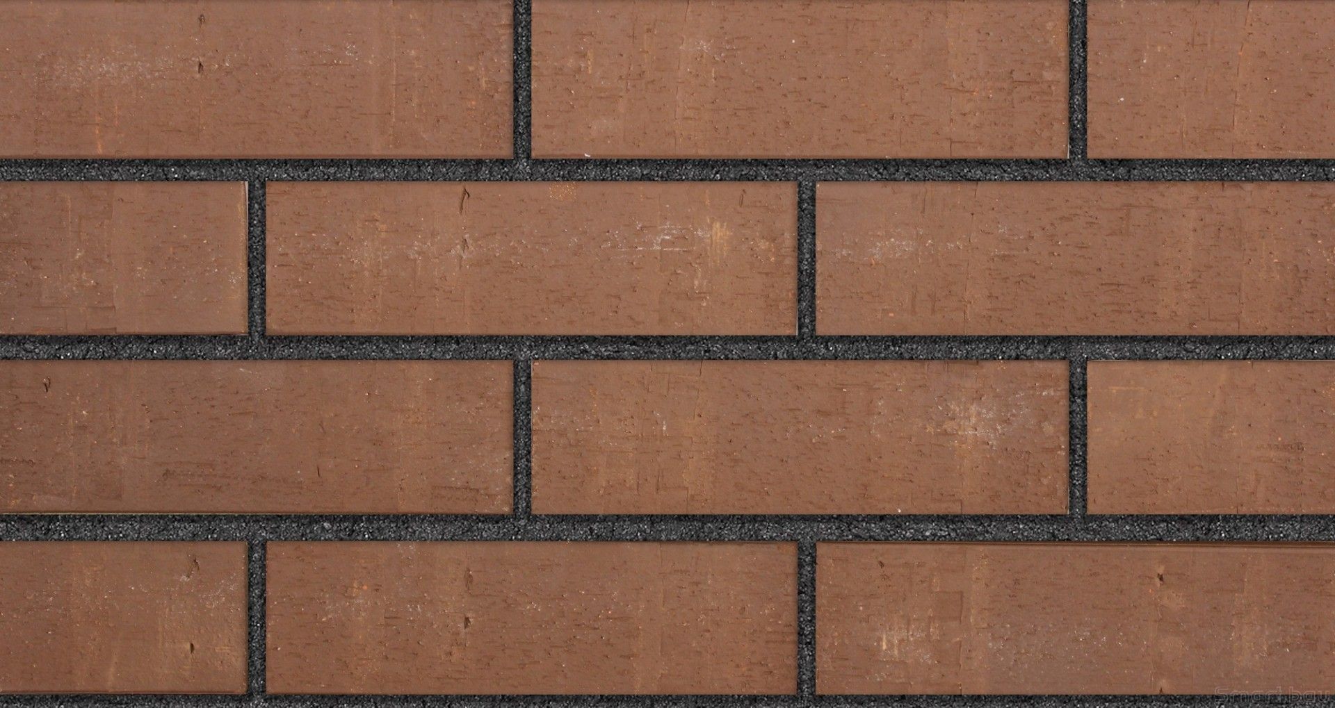 Клинкерная плитка под кирпич ЛСР Атик однотонного коричневого цвета имеет гладкую поверхность.
