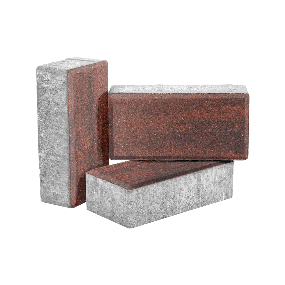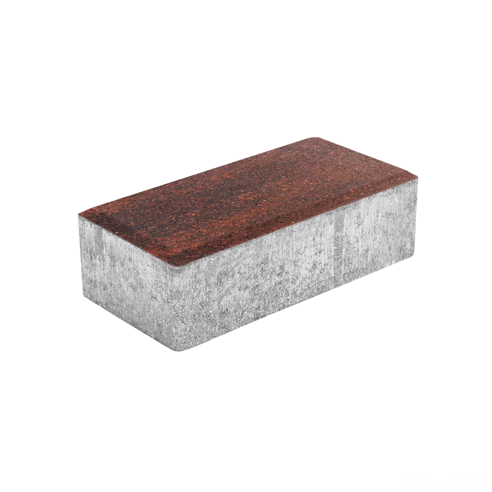 Вибропрессованная тротуарная плитка Ромб-Арт Колор Микс Классик Люксор пестрого красно-коричневого цвета — классическая брусчатка в форме прямоугольника размером 20 × 10 см с классической фаской. Стандартная толщина тротуарной плитки Ромб-Арт Колор Микс Классик 4 и 6 см, под заказ возможно производство плитки 8 см.