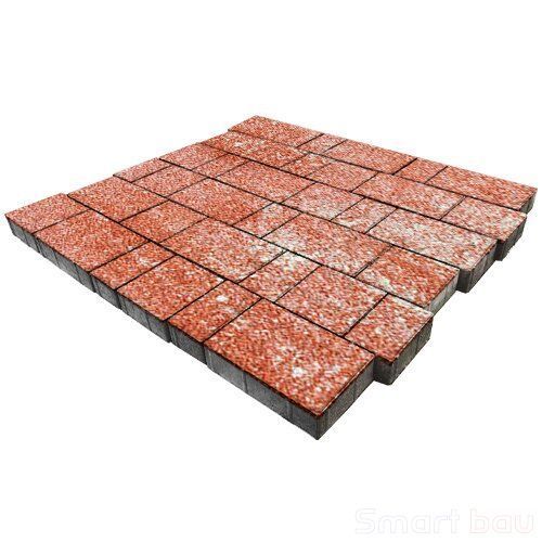 Тротуарная классическая среднеразмерная плитка SteinRus Новый город Colormix Порто с микрофаской пестрого красно-черного цвета, как и все цвета популярной коллекции брусчатки Новый город, состоит из трех элементов, размером 260×160, 160×100, 160×160 высота 40 мм.